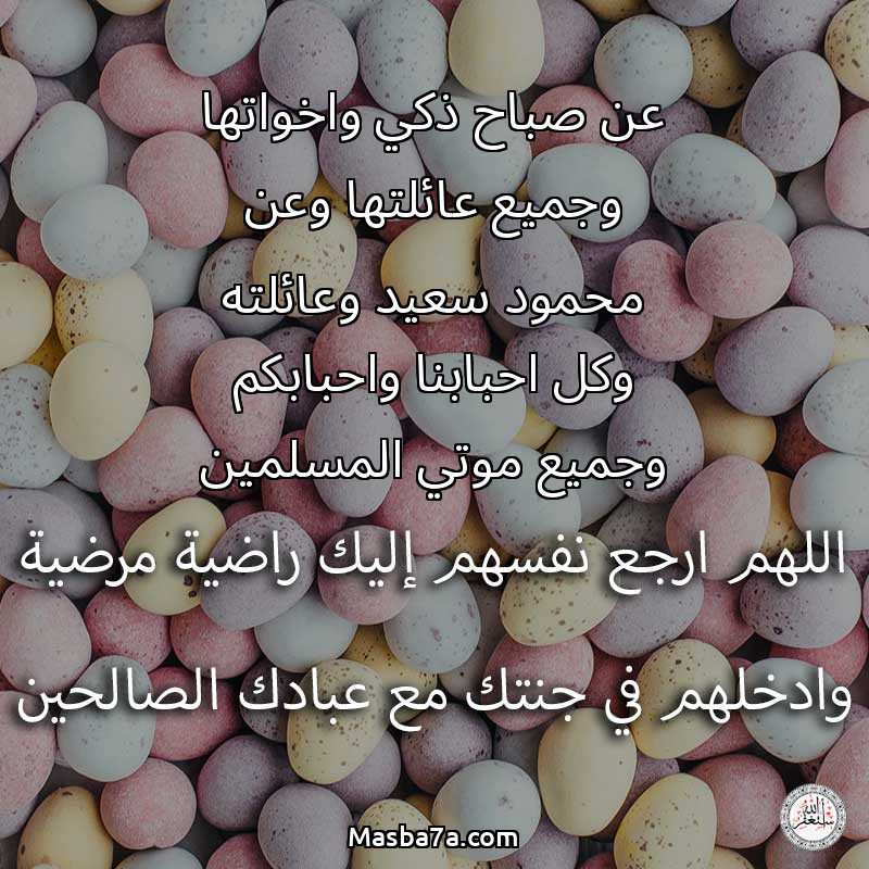 عن صباح ذكي واخواتها وجميع عائلتها وعن محمود سعيد وعائلته وكل احبابنا واحبابكم وجميع موتي المسلمين