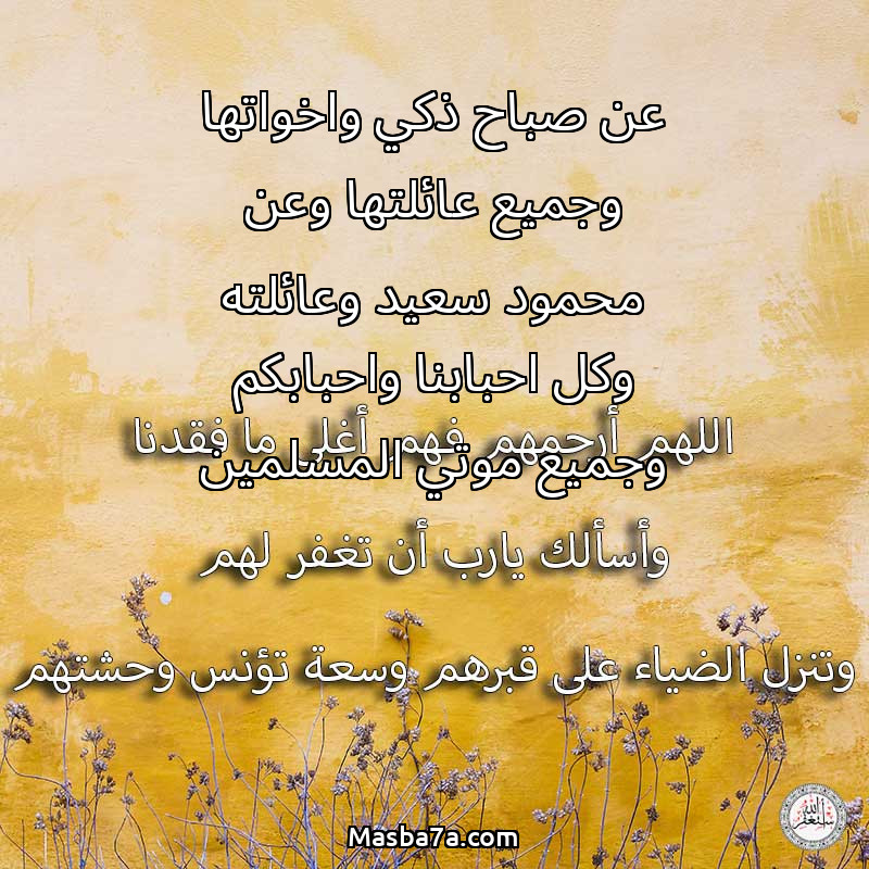 دعاء عن أرواح المرحومين عن صباح ذكي واخواتها وجميع عائلتها وعن محمود سعيد وعائلته وكل احبابنا واحبابكم وجميع موتي المسلمين