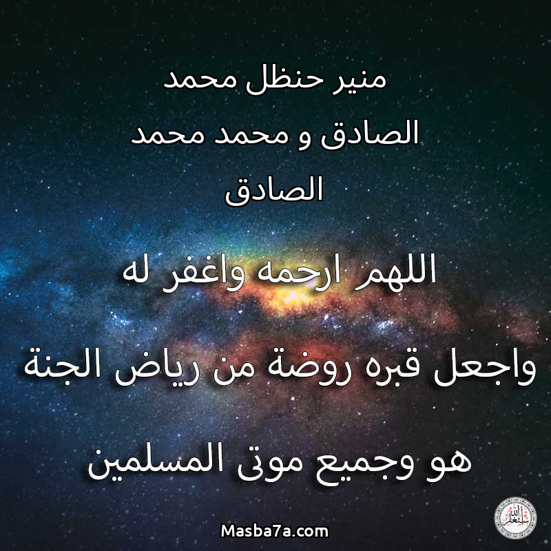 اللهم ارحم ( منير حنظل محمد الصادق و محمد محمد الصادق ) وانس وحشته واجمعنا به في جنتك ، اللهم ارحمه بقدر شوقنا له اللهم ارحمه واغفر له .