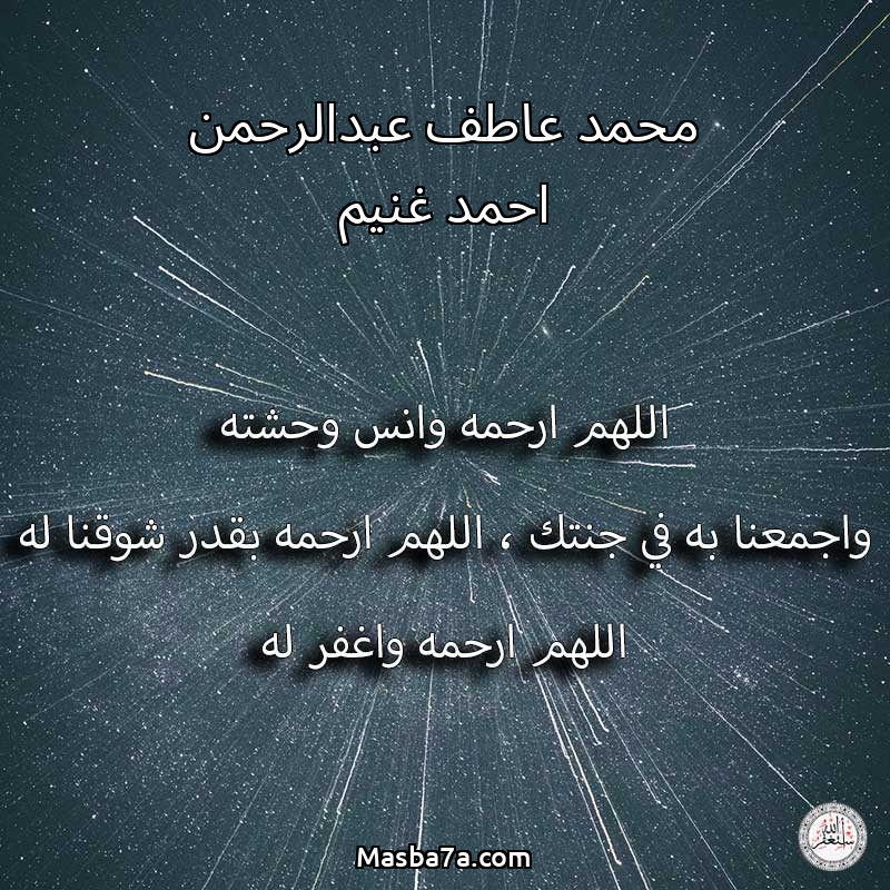 اللهم ارحم ( محمد عاطف عبدالرحمن احمد غنيم ) وانس وحشته واجمعنا به في جنتك ، اللهم ارحمه بقدر شوقنا له اللهم ارحمه واغفر له .