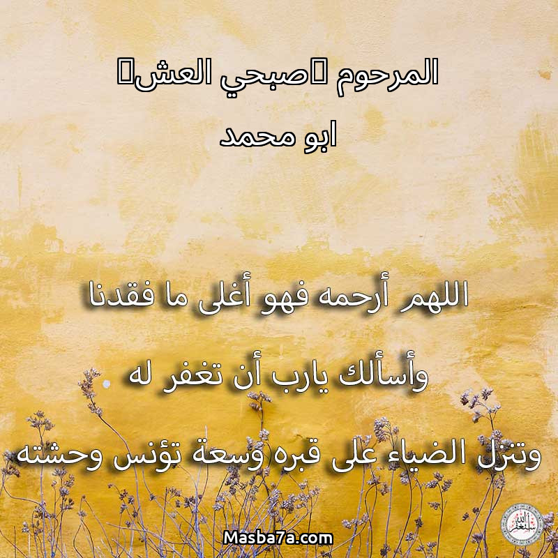 اللهم ارحم ( المرحوم (صبحي العش) ابو محمد ) وانس وحشته واجمعنا به في جنتك ، اللهم ارحمه بقدر شوقنا له اللهم ارحمه واغفر له .