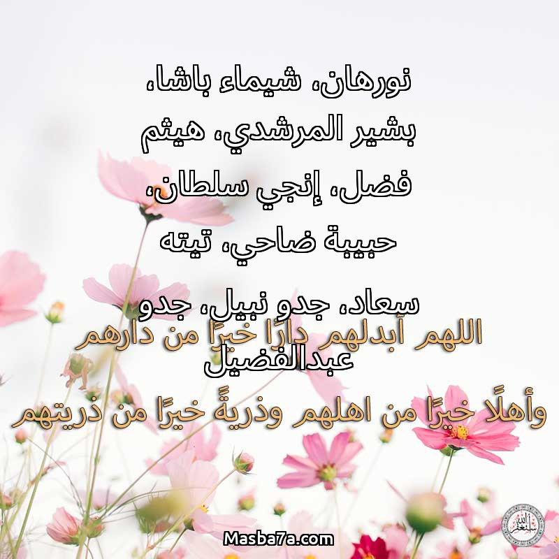 دعاء عن أرواح المرحومين نورهان، شيماء باشا، بشير المرشدي، هيثم فضل، إنجي سلطان، حبيبة ضاحي، تيته سعاد، جدو نبيل، جدو عبدالفضيل