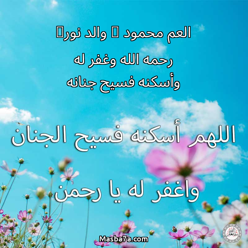 اللهم ارحم ( العم محمود ( والد نور) رحمه الله وغفر له وأسكنه فسيح جنانه ) وانس وحشته واجمعنا به في جنتك ، اللهم ارحمه بقدر شوقنا له اللهم ارحمه واغفر له .