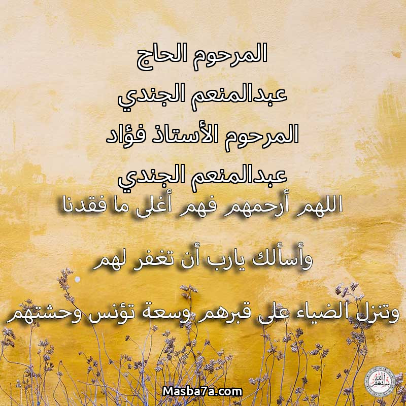 دعاء عن أرواح المرحومين المرحوم الحاج عبدالمنعم الجندي المرحوم الأستاذ فؤاد عبدالمنعم الجندي