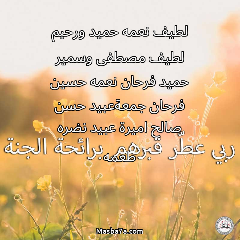 دعاء عن أرواح المرحومين لطيف نعمه حميد ورحيم لطيف مصطفى وسمير حميد فرحان نعمه حسين فرحان جمعةعبيد حسن صالح اميرة عبيد نضره طعمه
