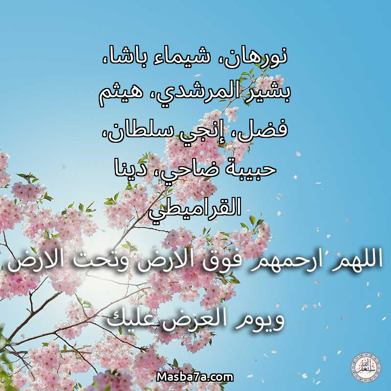 دعاء عن أرواح المرحومين نورهان، شيماء باشا، بشير المرشدي، هيثم فضل، إنجي سلطان، حبيبة ضاحي، دينا القراميطي