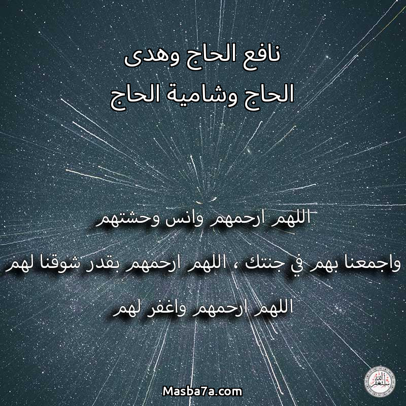 اللهم ارحم ( نافع الحاج وهدى الحاج وشامية الحاج ) وانس وحشتهم واجمعنا بهم في جنتك ، اللهم ارحمهم بقدر شوقنا لهم اللهم ارحمهم واغفر لهم.