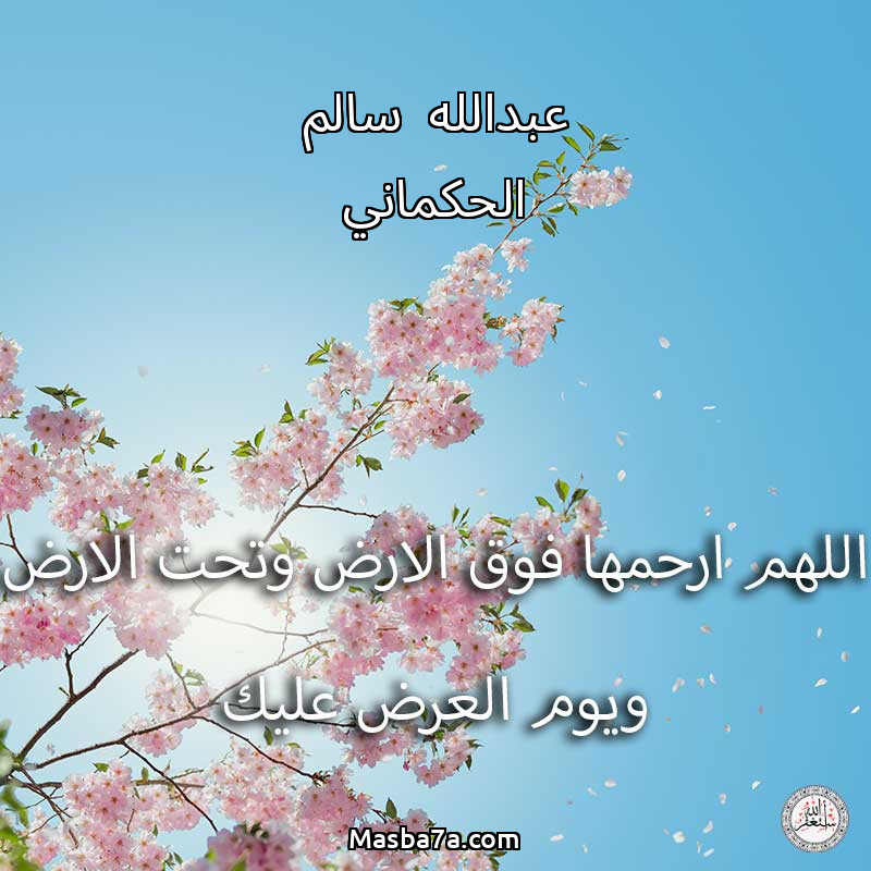اللهم ارحم ( عبدالله سالم الحكماني ) وانس وحشتها واجمعنا بها في جنتك ، اللهم ارحمها بقدر شوقنا لها اللهم ارحمها واغفر لها .