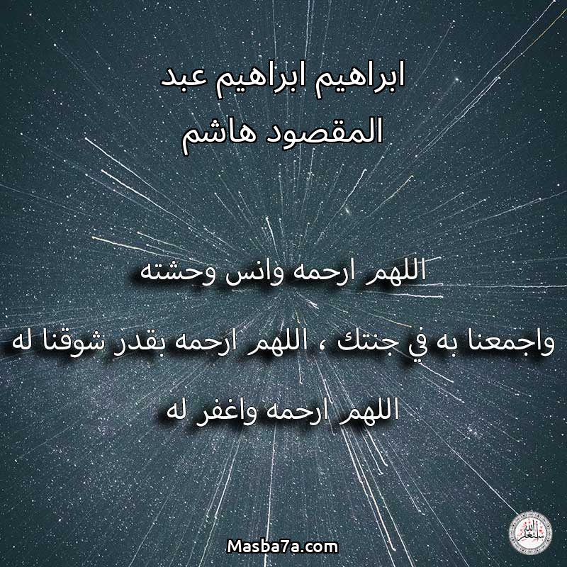 اللهم ارحم ( ابراهيم ابراهيم عبد المقصود هاشم ) وانس وحشته واجمعنا به في جنتك ، اللهم ارحمه بقدر شوقنا له اللهم ارحمه واغفر له .