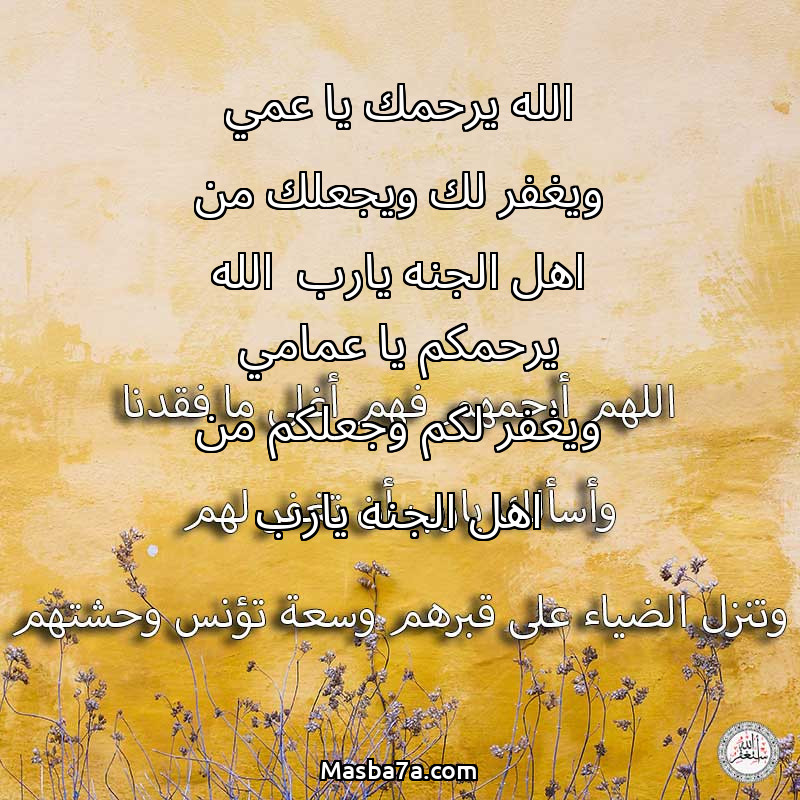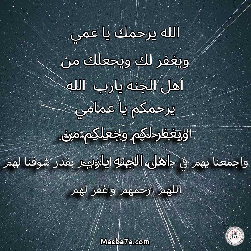 دعاء عن أرواح المرحومين الله يرحمك يا عمي ويغفر لك ويجعلك من اهل الجنه يارب الله يرحمكم يا عمامي ويغفر لكم وجعلكم من اهل الجنه يارب
