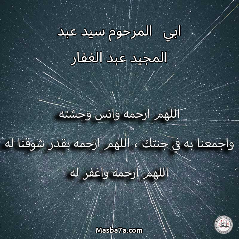 اللهم ارحم ( ابي المرحوم سيد عبد المجيد عبد الغفار ) وانس وحشته واجمعنا به في جنتك ، اللهم ارحمه بقدر شوقنا له اللهم ارحمه واغفر له .