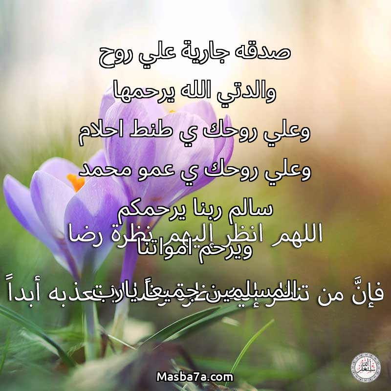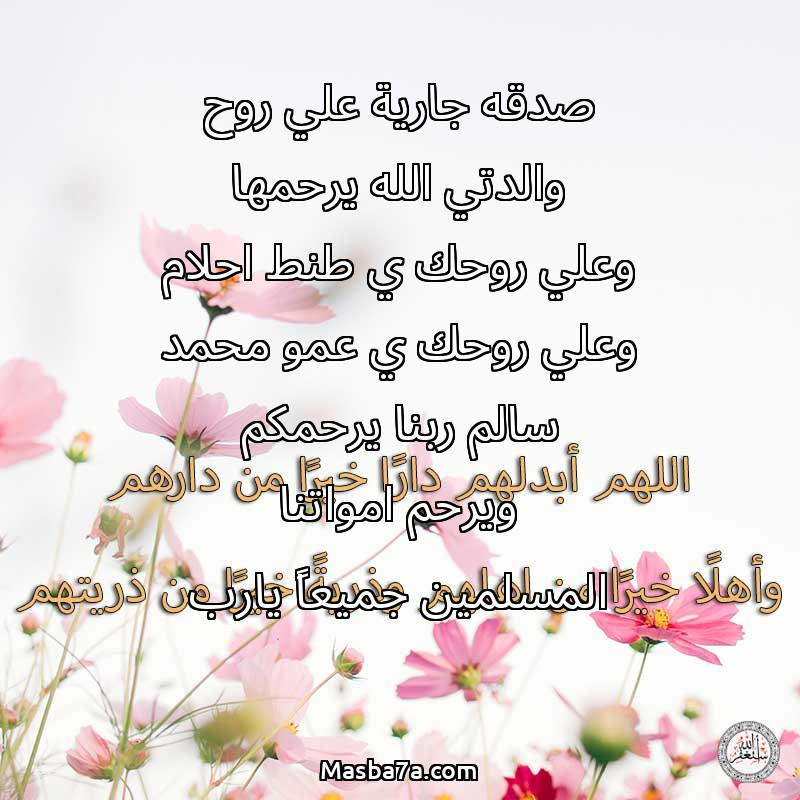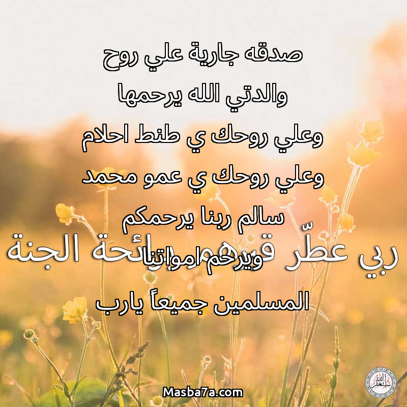 دعاء عن أرواح المرحومين صدقه جارية علي روح والدتي الله يرحمها وعلي روحك ي طنط احلام وعلي روحك ي عمو محمد سالم ربنا يرحمكم ويرحم امواتنا المسلمين جميعاً يارب
