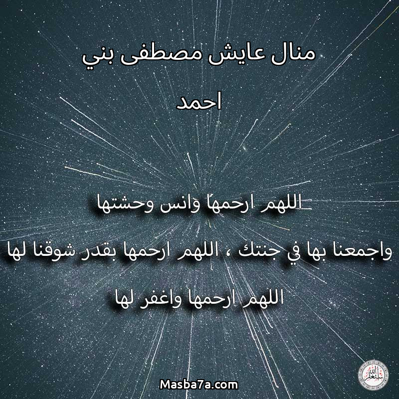 اللهم ارحم ( منال عايش مصطفى بني احمد ) وانس وحشتها واجمعنا بها في جنتك ، اللهم ارحمها بقدر شوقنا لها اللهم ارحمها واغفر لها .