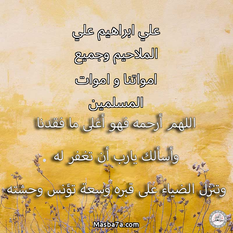 اللهم ارحم ( علي ابراهيم علي الملاحيم وجميع امواتنا و اموات المسلمين ) وانس وحشته واجمعنا به في جنتك ، اللهم ارحمه بقدر شوقنا له اللهم ارحمه واغفر له .