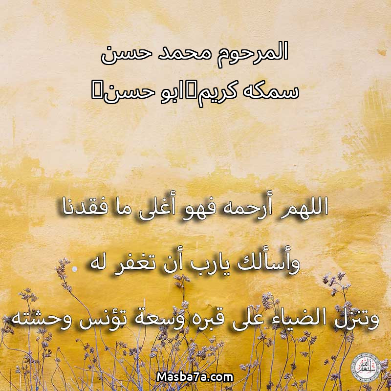 اللهم ارحم ( المرحوم محمد حسن سمكه كريم(ابو حسن) ) وانس وحشته واجمعنا به في جنتك ، اللهم ارحمه بقدر شوقنا له اللهم ارحمه واغفر له .