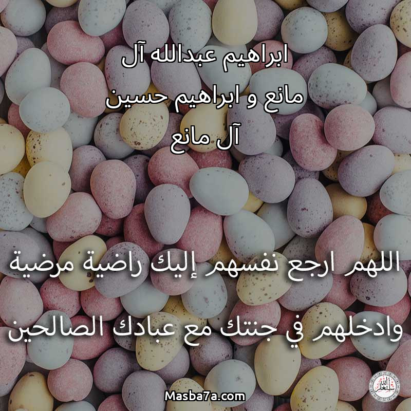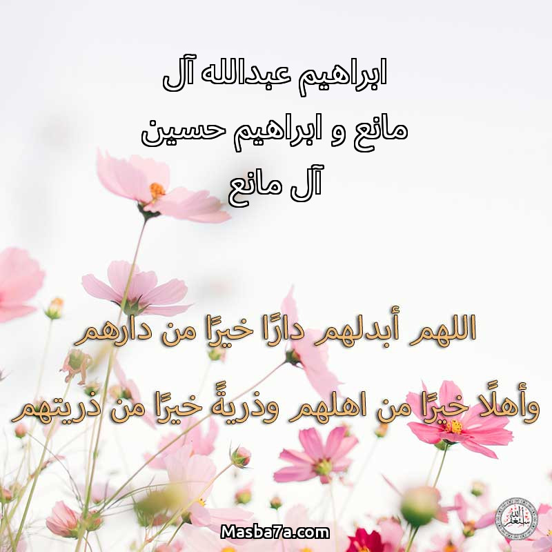 اللهم ارحم ( ابراهيم عبدالله آل مانع و ابراهيم حسين آل مانع ) وانس وحشتهم واجمعنا بهم في جنتك ، اللهم ارحمهم بقدر شوقنا لهم اللهم ارحمهم واغفر لهم.