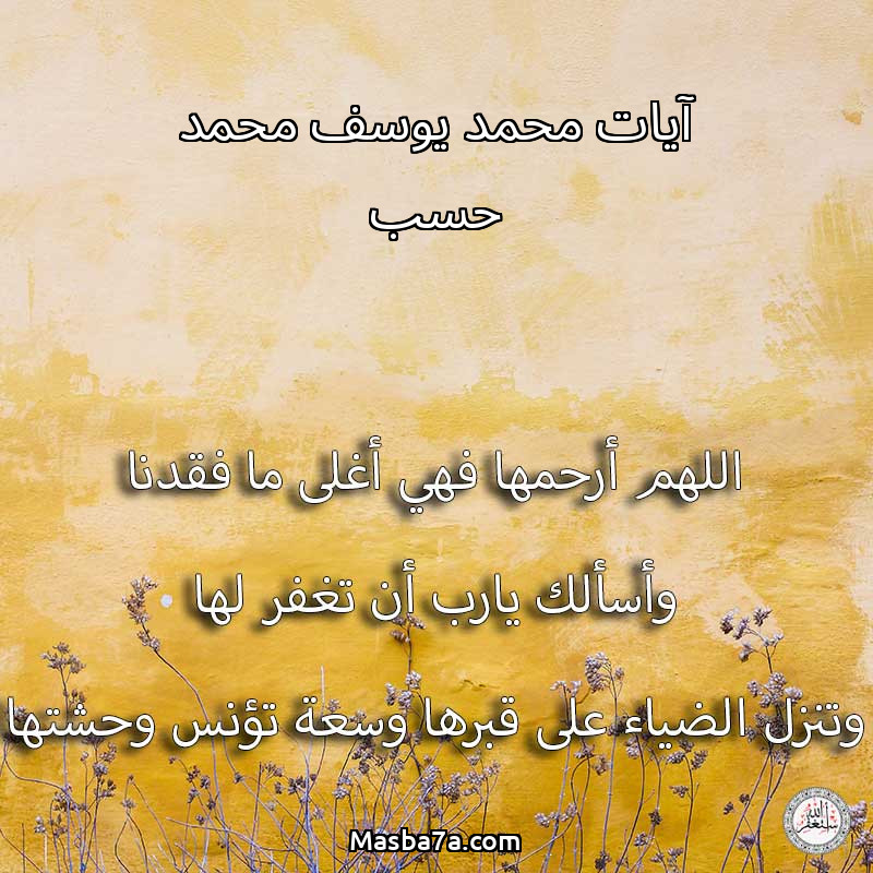 اللهم ارحم ( آيات محمد يوسف محمد حسب ) وانس وحشتها واجمعنا بها في جنتك ، اللهم ارحمها بقدر شوقنا لها اللهم ارحمها واغفر لها .