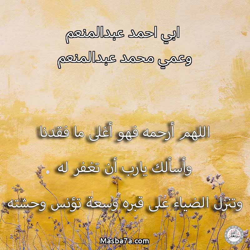 اللهم ارحم ( ابي احمد عبدالمنعم وعمي محمد عبدالمنعم ) وانس وحشته واجمعنا به في جنتك ، اللهم ارحمه بقدر شوقنا له اللهم ارحمه واغفر له .