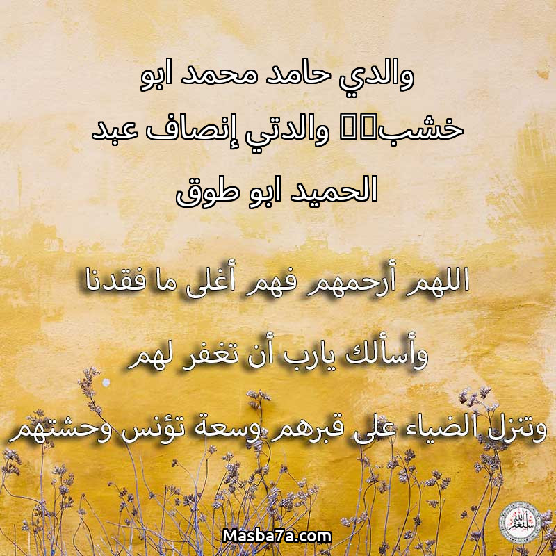 دعاء عن أرواح المرحومين والدي حامد محمد ابو خشب& والدتي إنصاف عبد الحميد ابو طوق