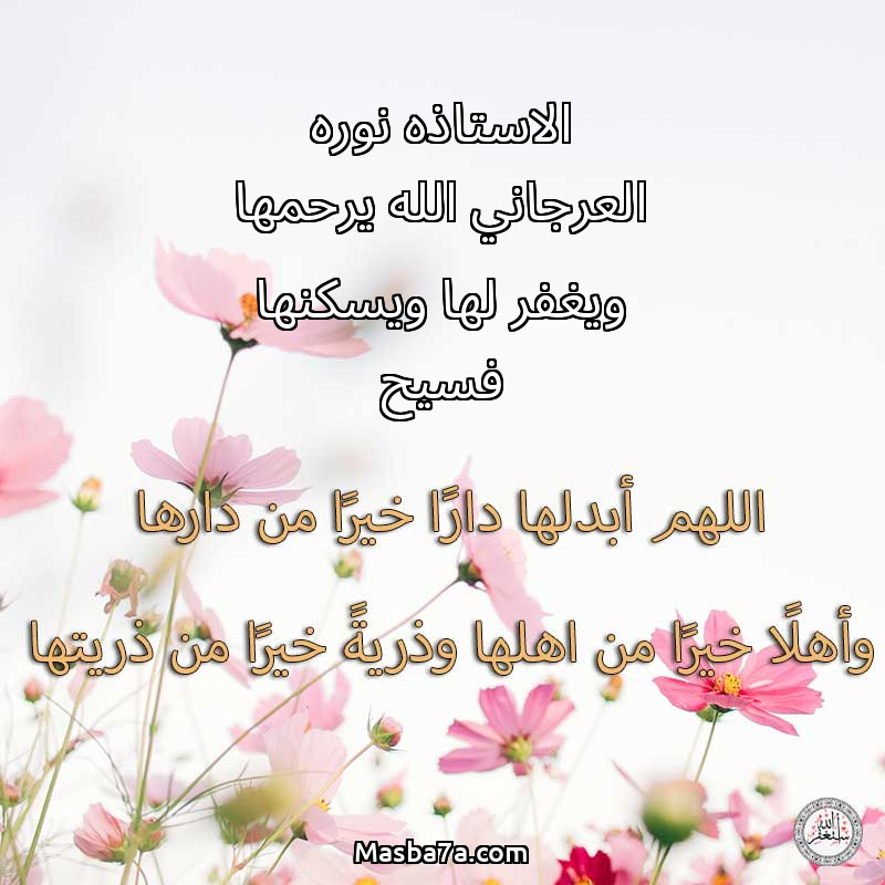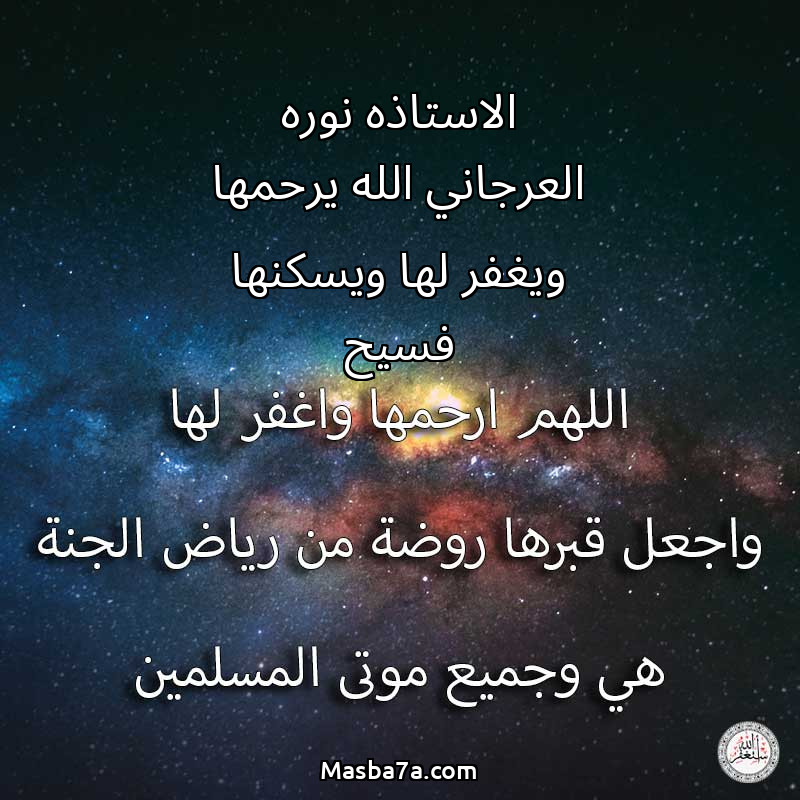 دعاء عن روح المرحومة الاستاذه نوره العرجاني الله يرحمها ويغفر لها ويسكنها فسيح