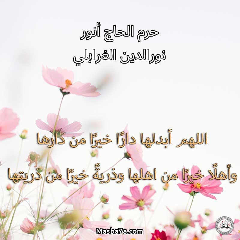 اللهم ارحم ( حرم الحاج أنور نورالدين الغرابلي ) وانس وحشتها واجمعنا بها في جنتك ، اللهم ارحمها بقدر شوقنا لها اللهم ارحمها واغفر لها .