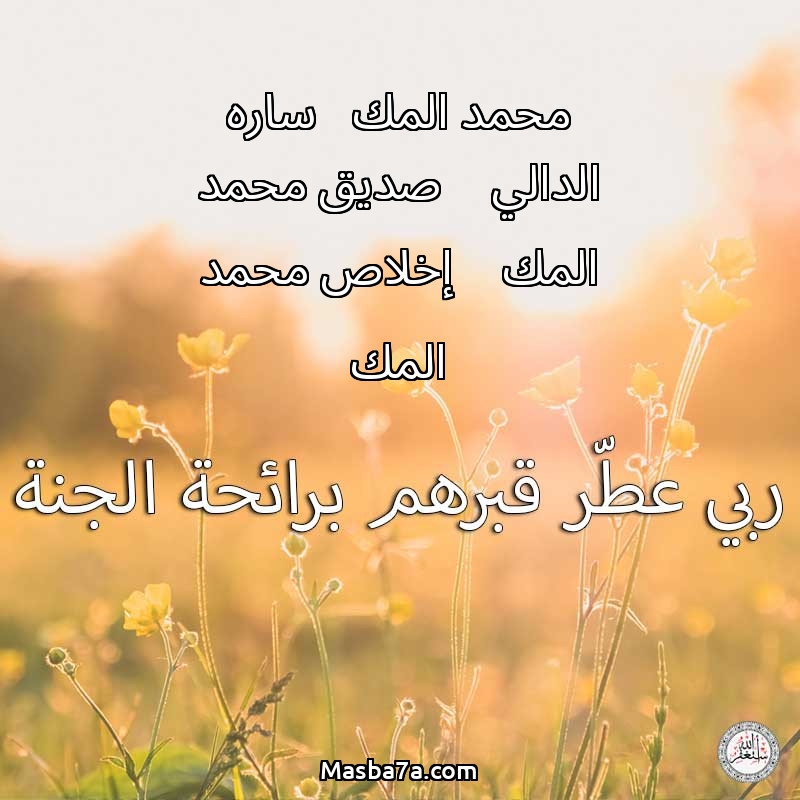 اللهم ارحم ( محمد المك ساره الدالي صديق محمد المك إخلاص محمد المك ) وانس وحشتهم واجمعنا بهم في جنتك ، اللهم ارحمهم بقدر شوقنا لهم اللهم ارحمهم واغفر لهم.
