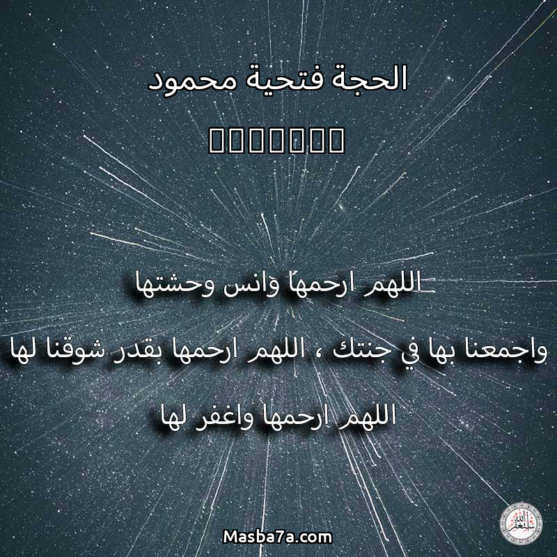 اللهم ارحم ( الحجة فتحية محمود ♥️ ) وانس وحشتها واجمعنا بها في جنتك ، اللهم ارحمها بقدر شوقنا لها اللهم ارحمها واغفر لها .