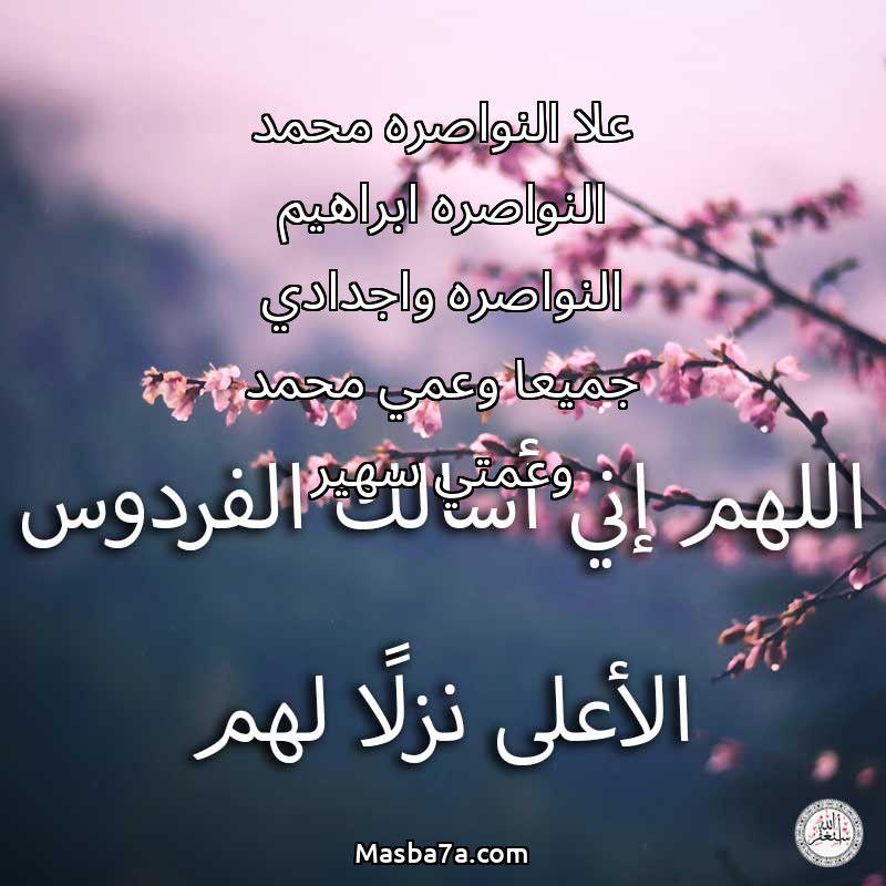 اللهم ارحم ( علا النواصره محمد النواصره ابراهيم النواصره واجدادي جميعا وعمي محمد وعمتي سهير ) وانس وحشتهم واجمعنا بهم في جنتك ، اللهم ارحمهم بقدر شوقنا لهم اللهم ارحمهم واغفر لهم.
