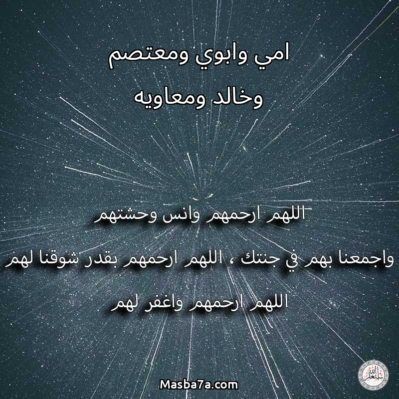 اللهم ارحم ( امي وابوي ومعتصم وخالد ومعاويه ) وانس وحشتهم واجمعنا بهم في جنتك ، اللهم ارحمهم بقدر شوقنا لهم اللهم ارحمهم واغفر لهم.