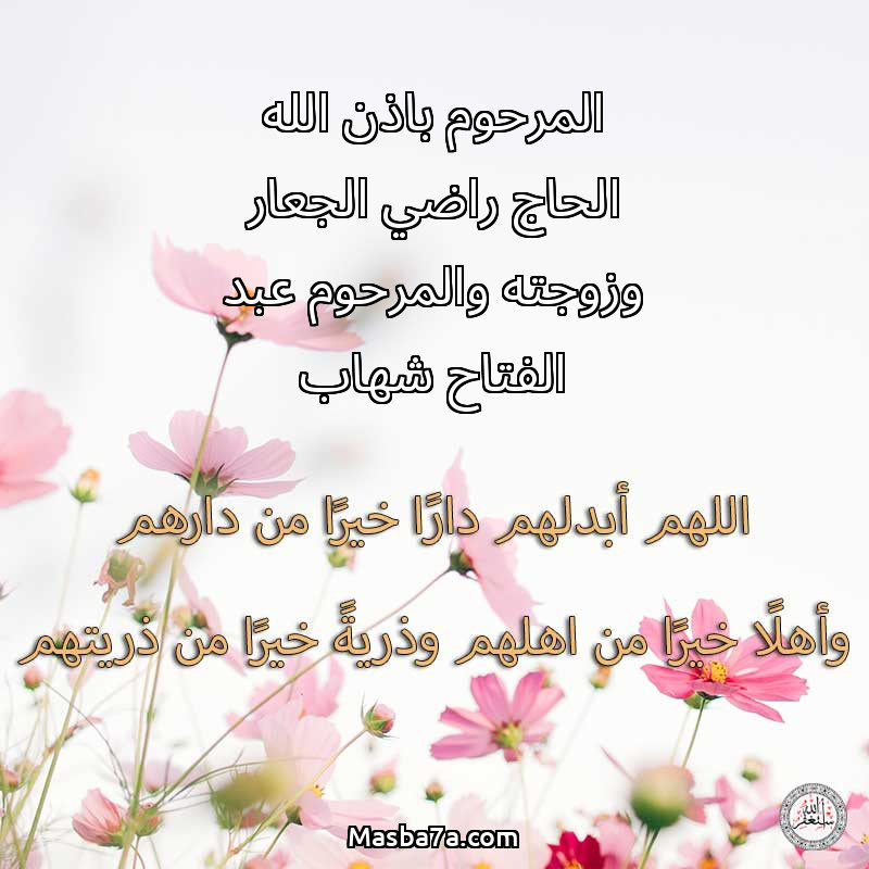 دعاء عن أرواح المرحومين المرحوم باذن الله الحاج راضي الجعار وزوجته والمرحوم عبد الفتاح شهاب