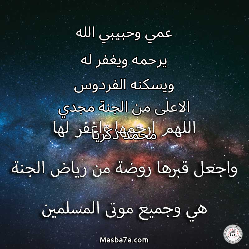 اللهم ارحم ( عمي وحبيبي الله يرحمه ويغفر له ويسكنه الفردوس الاعلى من الجنة مجدي محمد ذكريا ) وانس وحشتها واجمعنا بها في جنتك ، اللهم ارحمها بقدر شوقنا لها اللهم ارحمها واغفر لها .