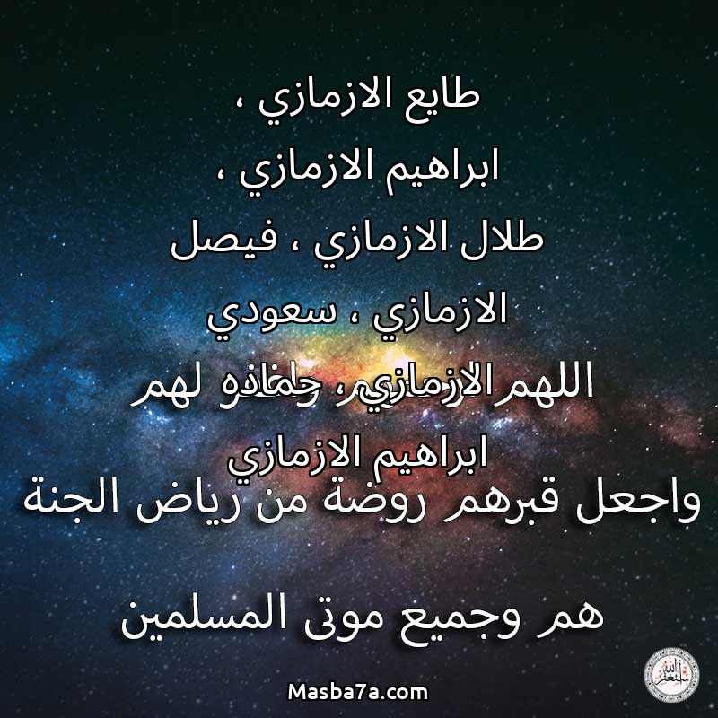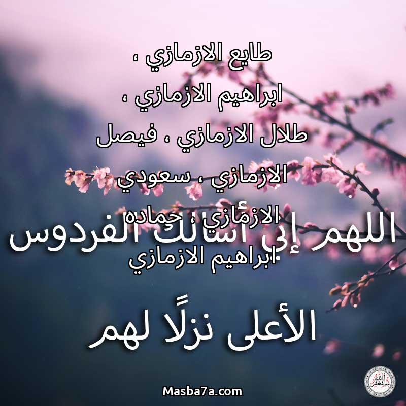 دعاء عن أرواح المرحومين طايع الازمازي ، ابراهيم الازمازي ، طلال الازمازي ، فيصل الازمازي ، سعودي الازمازي ، حماده ابراهيم الازمازي