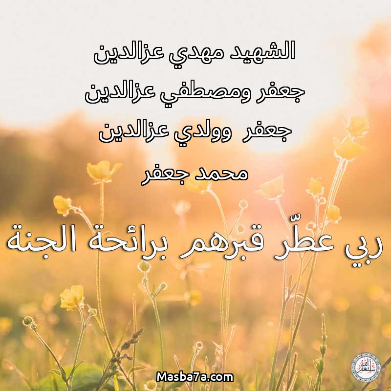 سورة الفاتحة عن أرواح الشهيد مهدي عزالدين جعفر ومصطفي عزالدين جعفر وولدي عزالدين محمد جعفر