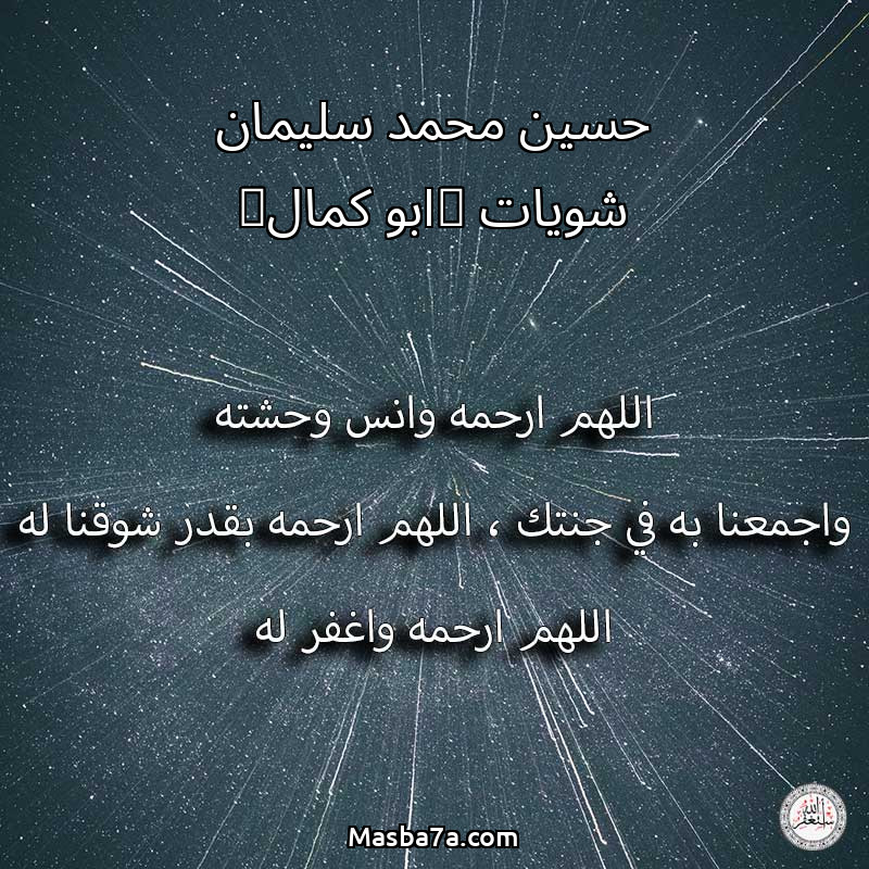 اللهم ارحم ( حسين محمد سليمان شويات (ابو كمال) ) وانس وحشته واجمعنا به في جنتك ، اللهم ارحمه بقدر شوقنا له اللهم ارحمه واغفر له .
