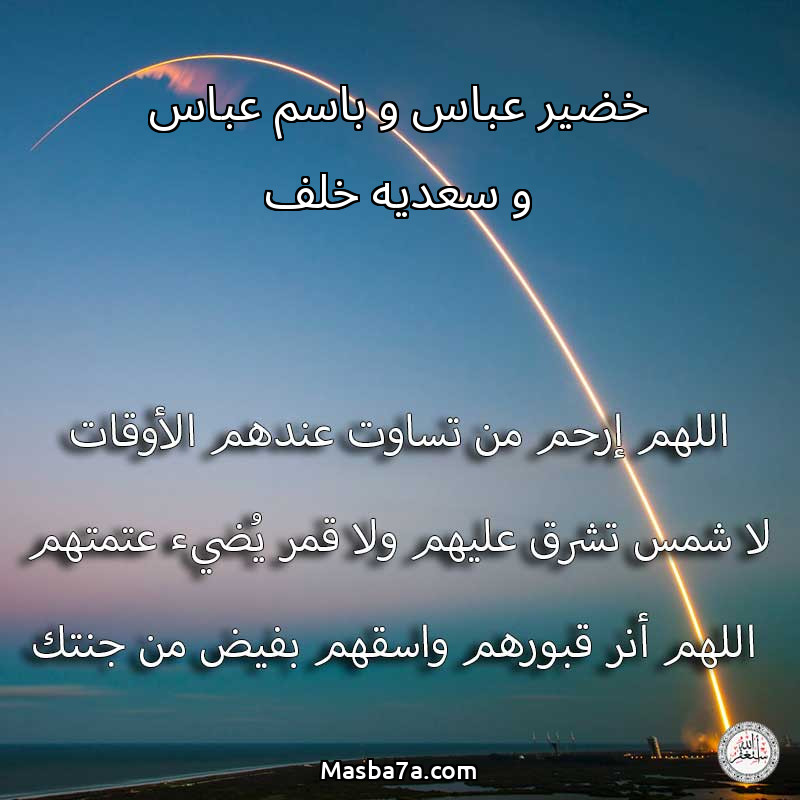 اللهم ارحم ( خضير عباس و باسم عباس و سعديه خلف ) وانس وحشته واجمعنا به في جنتك ، اللهم ارحمه بقدر شوقنا له اللهم ارحمه واغفر له .
