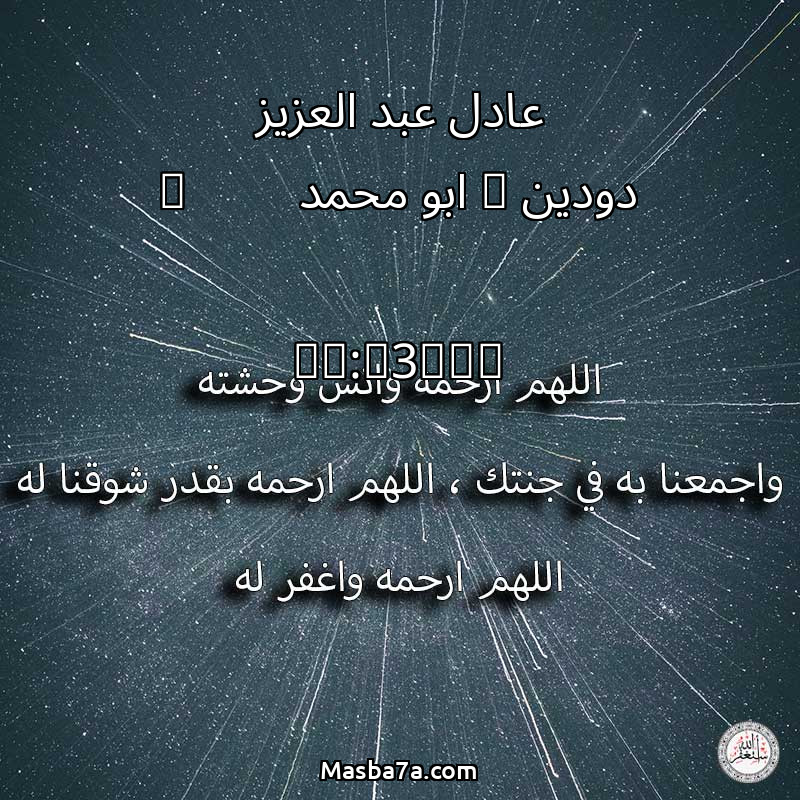 اللهم ارحم ( عادل عبد العزيز دودين ( ابو محمد ) by:s3dst ) وانس وحشته واجمعنا به في جنتك ، اللهم ارحمه بقدر شوقنا له اللهم ارحمه واغفر له .