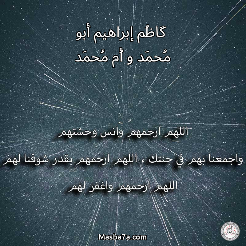 اللهم ارحم ( كَاظُم إبراهيم أَبو مُحمَد و أُم مُحمَد ) وانس وحشتهم واجمعنا بهم في جنتك ، اللهم ارحمهم بقدر شوقنا لهم اللهم ارحمهم واغفر لهم.