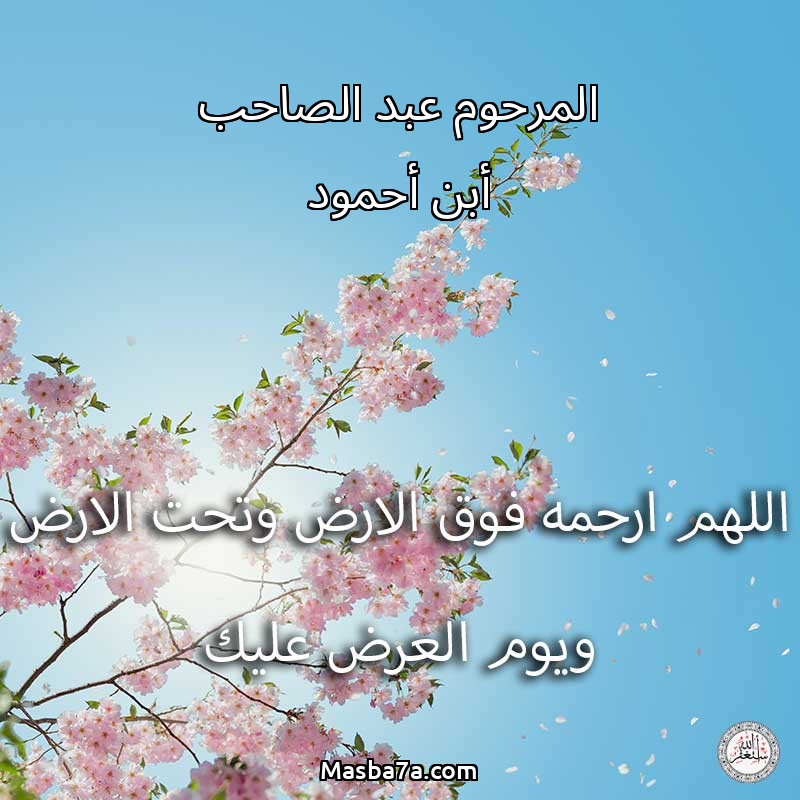 اللهم ارحم ( المرحوم عبد الصاحب أبن أحمود ) وانس وحشته واجمعنا به في جنتك ، اللهم ارحمه بقدر شوقنا له اللهم ارحمه واغفر له .