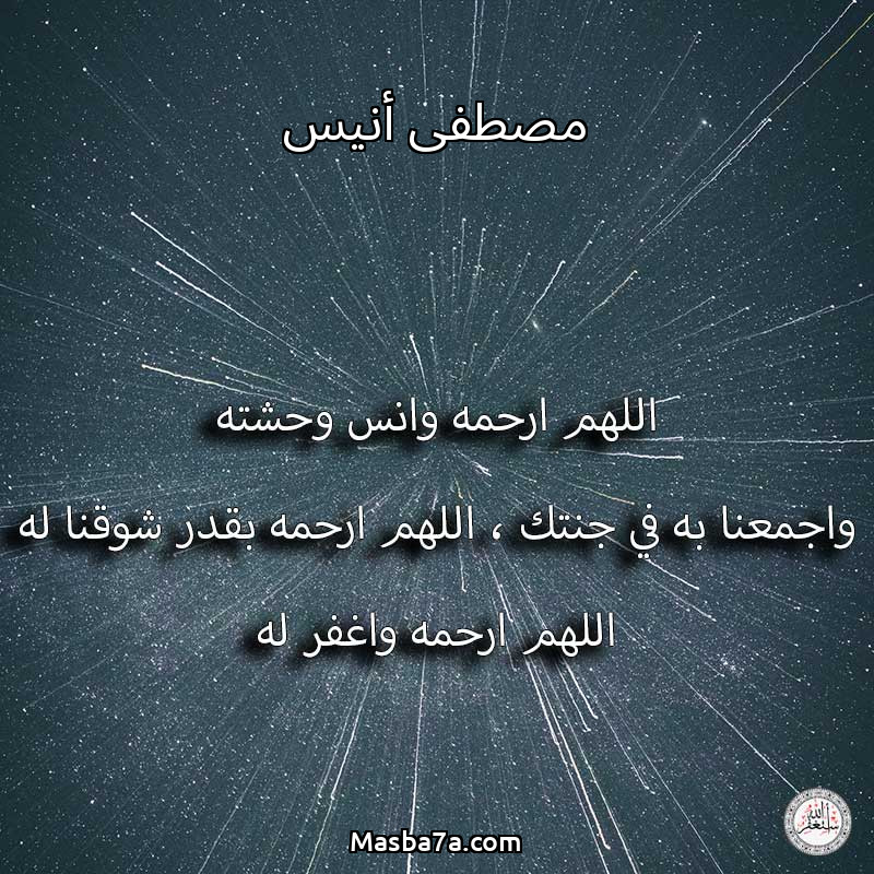 اللهم ارحم ( مصطفى أنيس ) وانس وحشته واجمعنا به في جنتك ، اللهم ارحمه بقدر شوقنا له اللهم ارحمه واغفر له .