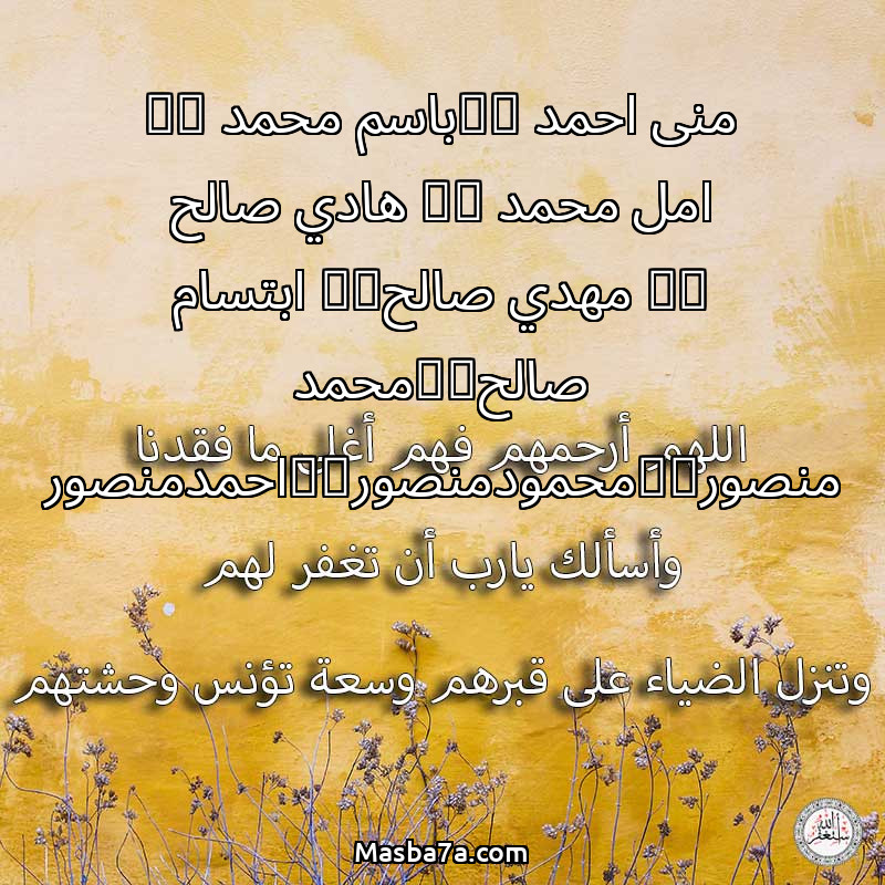 دعاء عن أرواح المرحومين منى احمد __باسم محمد __ امل محمد __ هادي صالح __ مهدي صالح__ ابتسام صالح__محمد منصور__محمودمنصور__احمدمنصور