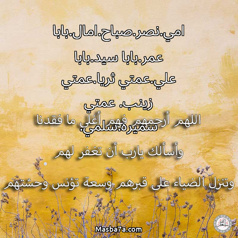 دعاء عن أرواح المرحومين امي.نصر.صباح.امال.بابا عمر.بابا سيد.بابا علي.عمتي ثريا.عمتي زينب. عمتي سميره.سلمي.