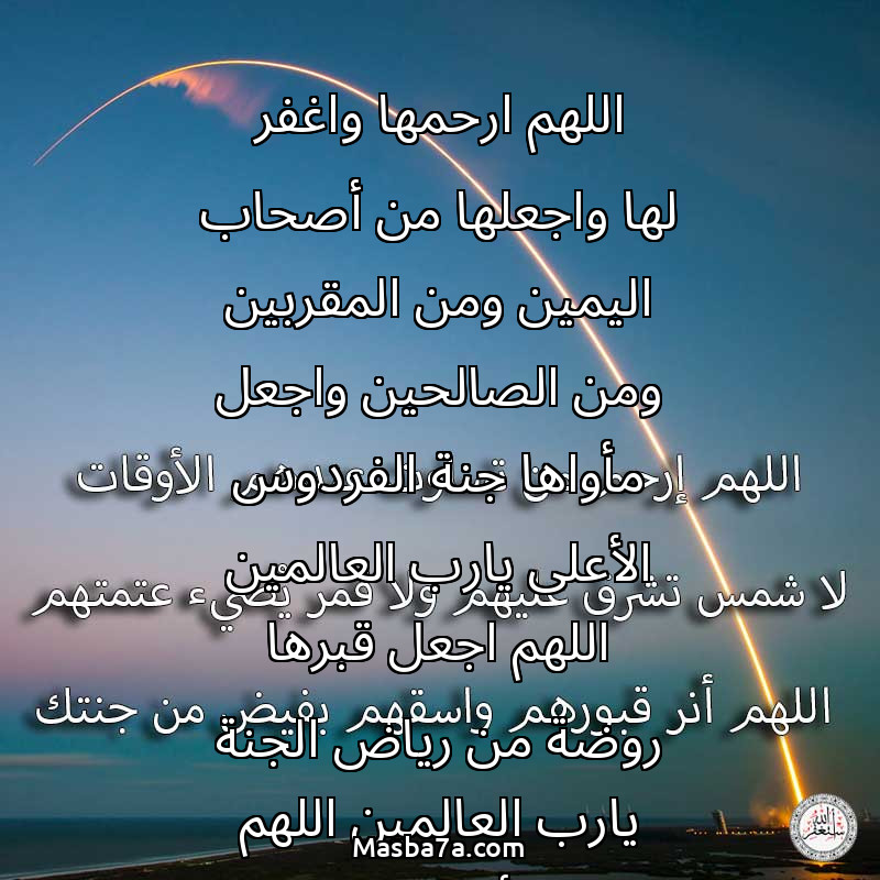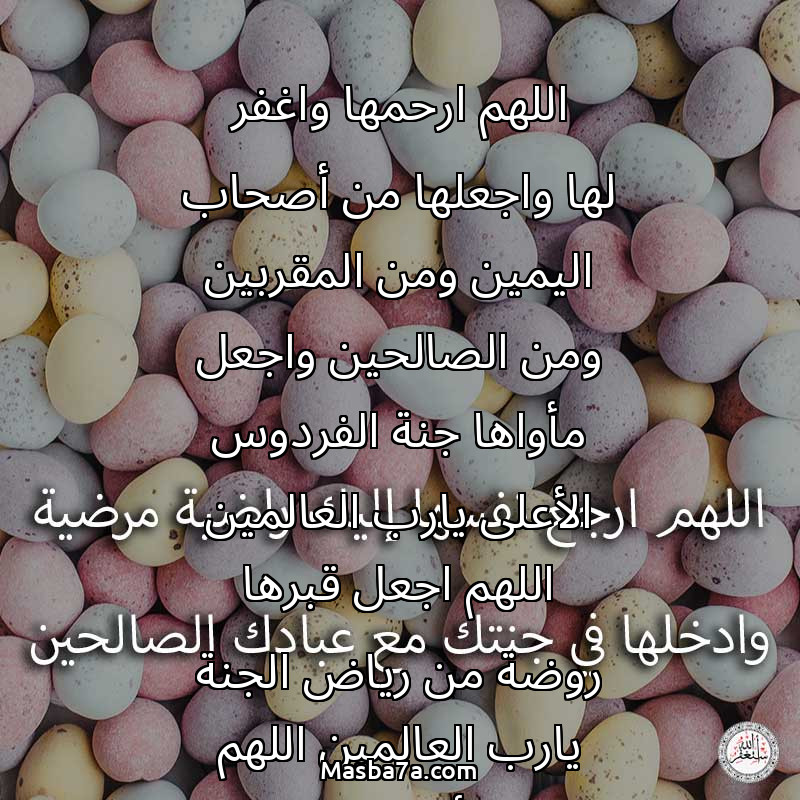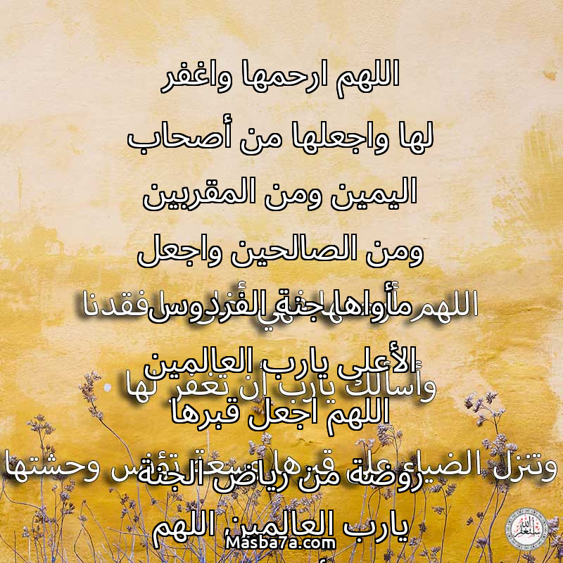 اللهم ارحمها واغفر لها واجعلها من أصحاب اليمين ومن المقربين ومن الصالحين واجعل مأواها جنة الفردوس الأعلى يارب العالمين اللهم اجعل قبرها روضة من رياض الجنة يارب العالمين اللهم الهم أهلها وذويها الصبر والسلوان وانا لله وانا اليه راجعون