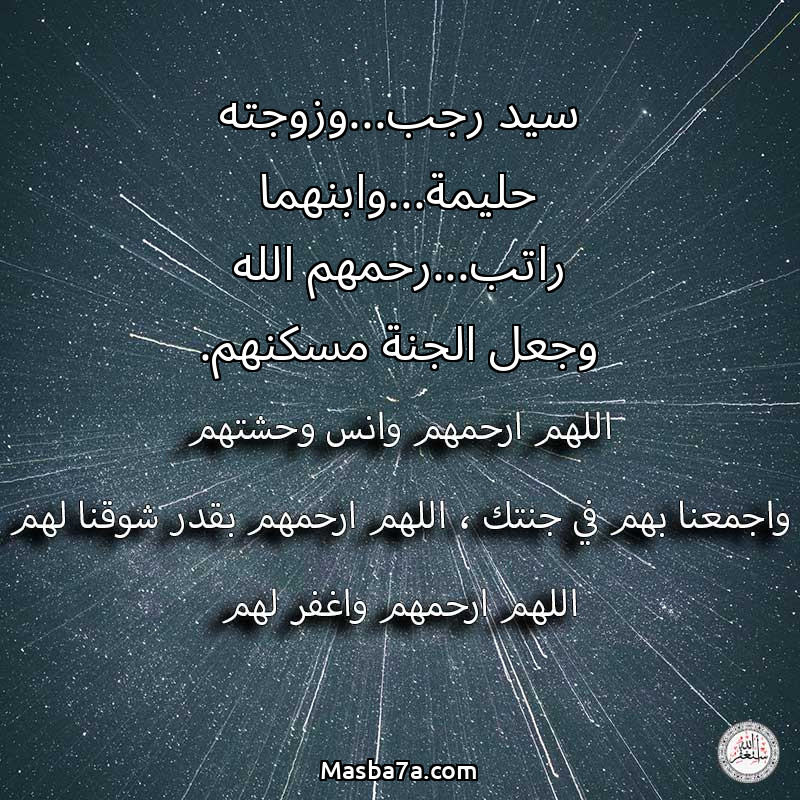 دعاء عن أرواح المرحومين سيد رجب...وزوجته حليمة...وابنهما راتب...رحمهم الله وجعل الجنة مسكنهم.