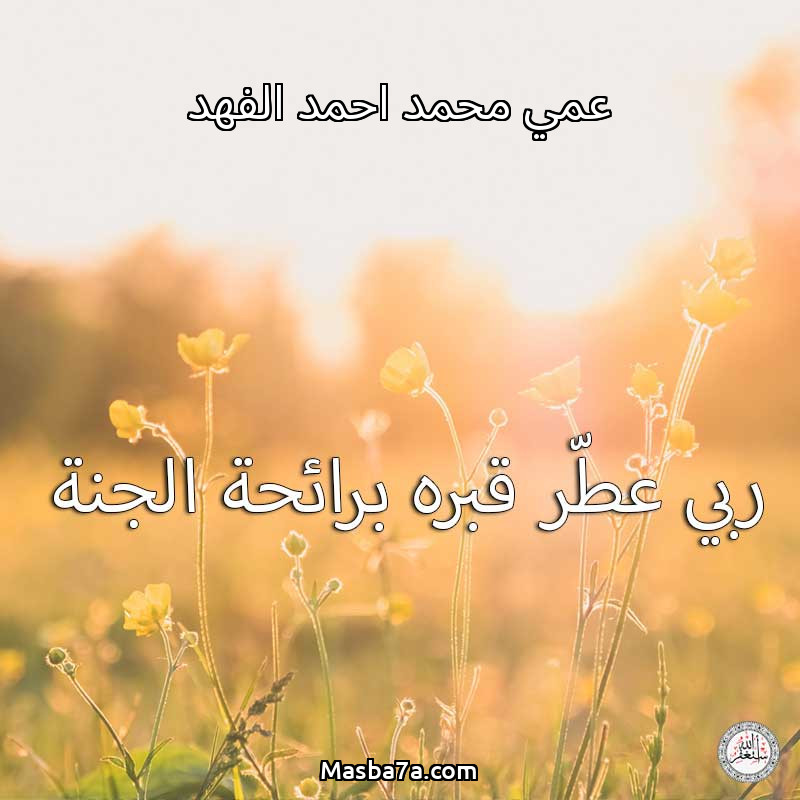 اللهم ارحم ( عمي محمد احمد الفهد ) وانس وحشته واجمعنا به في جنتك ، اللهم ارحمه بقدر شوقنا له اللهم ارحمه واغفر له .