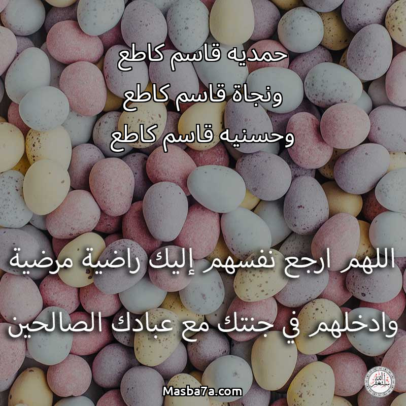 اللهم ارحم ( حمديه قاسم كاطع ونجاة قاسم كاطع وحسنيه قاسم كاطع ) وانس وحشتهم واجمعنا بهم في جنتك ، اللهم ارحمهم بقدر شوقنا لهم اللهم ارحمهم واغفر لهم.