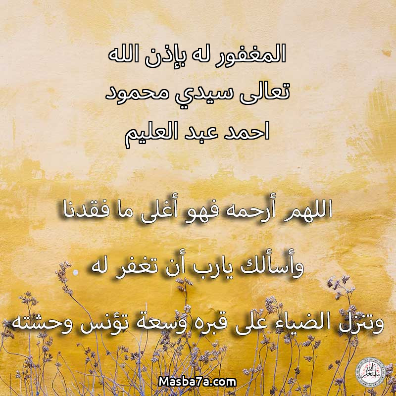 اللهم ارحم ( المغفور له بإذن الله تعالى سيدي محمود احمد عبد العليم ) وانس وحشته واجمعنا به في جنتك ، اللهم ارحمه بقدر شوقنا له اللهم ارحمه واغفر له .