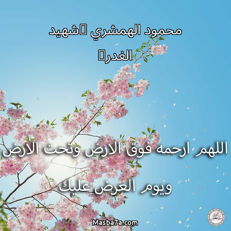 اللهم ارحم ( محمود الهمشري (شهيد الغدر) ) وانس وحشته واجمعنا به في جنتك ، اللهم ارحمه بقدر شوقنا له اللهم ارحمه واغفر له .