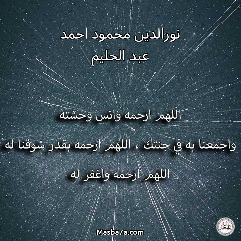 اللهم ارحم ( نورالدين محمود احمد عبد الحليم ) وانس وحشته واجمعنا به في جنتك ، اللهم ارحمه بقدر شوقنا له اللهم ارحمه واغفر له .