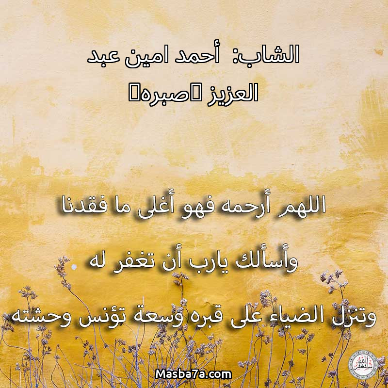 دعاء عن روح المرحوم الشاب:- أحمد امين عبد العزيز (صبره)