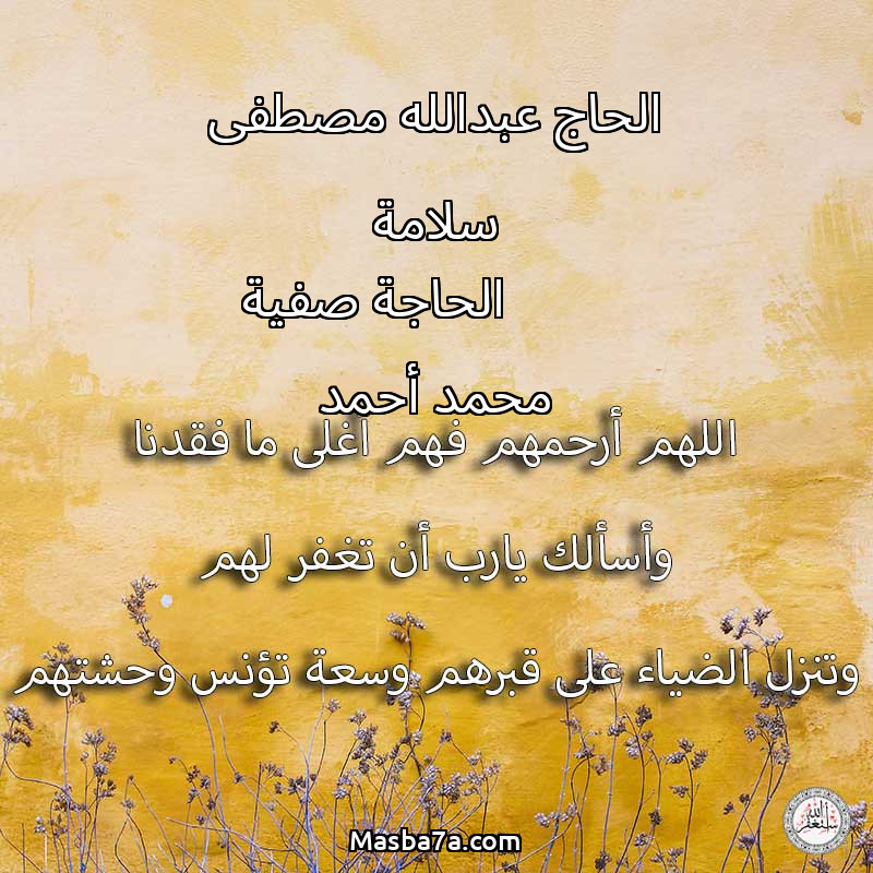دعاء عن أرواح المرحومين الحاج عبدالله مصطفى سلامة الحاجة صفية محمد أحمد